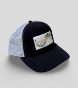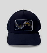 The classic trucker hat, reimagined. The Shining Sea Trucker is a sun-ready essential designed to accompany you anywhere, from the coast and water to the trail or whenever you need a little extra shade. It's designed with a structured five-panel fit, breathable mesh back, and a mid-curve visor that flatters every face. Crafted from high-performance TriTech fabric with UPF 30 sun protection and moisture-wicking comfort, this hat also features an ultra-soft, breathable, and quick-drying performance mesh sweatband for all-day wear. The hat is finished with our signature logo patch in navy, white, and metallic gold.