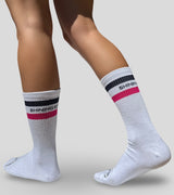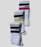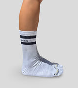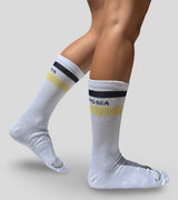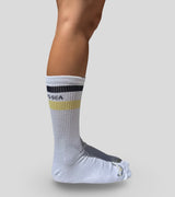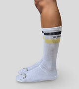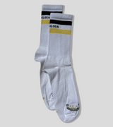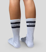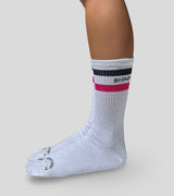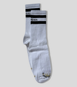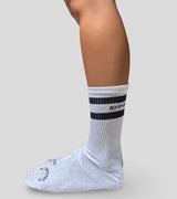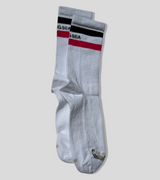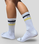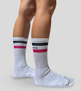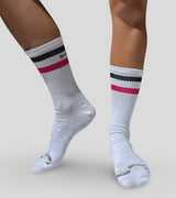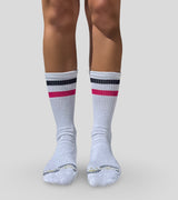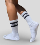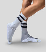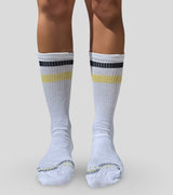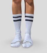 Inspired by iconic athletic styles of the ’70s and ’80s, these two-stripe ribbed crew socks are a retro classic with a modern edge. Reimagined in sustainable, performance-driven yarns for all-day comfort and finished with our name printed along the back.