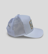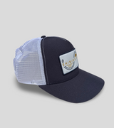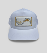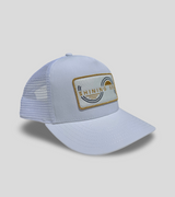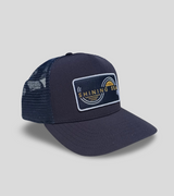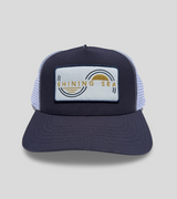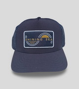 The classic trucker hat, reimagined. The Shining Sea Trucker is a sun-ready essential designed to accompany you anywhere, from the coast and water to the trail or whenever you need a little extra shade. It's designed with a structured five-panel fit, breathable mesh back, and a mid-curve visor that flatters every face. Crafted from high-performance TriTech fabric with UPF 30 sun protection and moisture-wicking comfort, this hat also features an ultra-soft, breathable, and quick-drying performance mesh sweatband for all-day wear. The hat is finished with our signature logo patch in navy, white, and metallic gold.